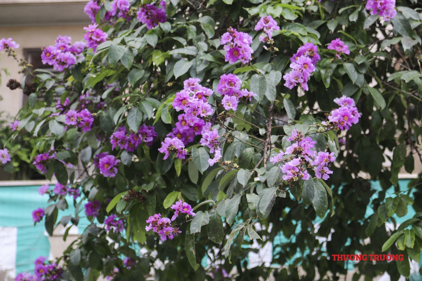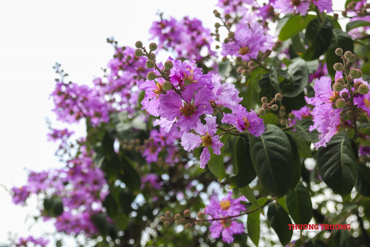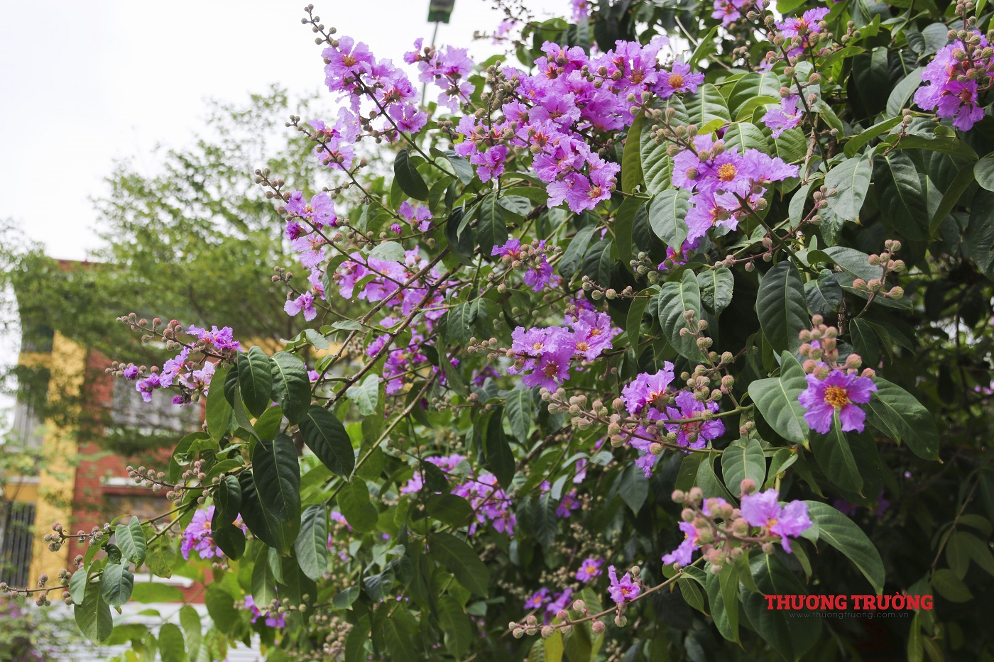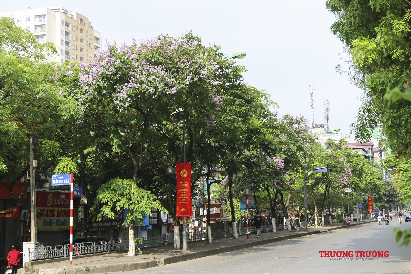 Vào hạ, trên nhiều con đường của Thủ đô hoa bằng lăng tím lại nở rộ. Sắc tím làm mê mẩn khiến bất cứ người nào đi qua cũng phải dừng chân ngắm nhìn. Đang mùa hoa nở, cả đoạn phố rực rỡ màu hoa tím ngắt.