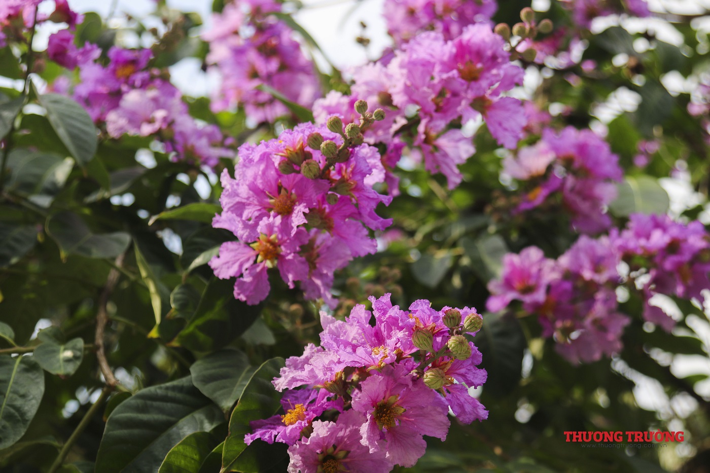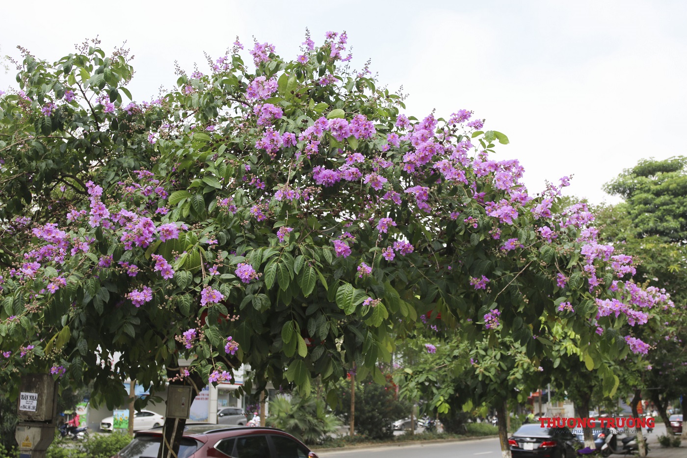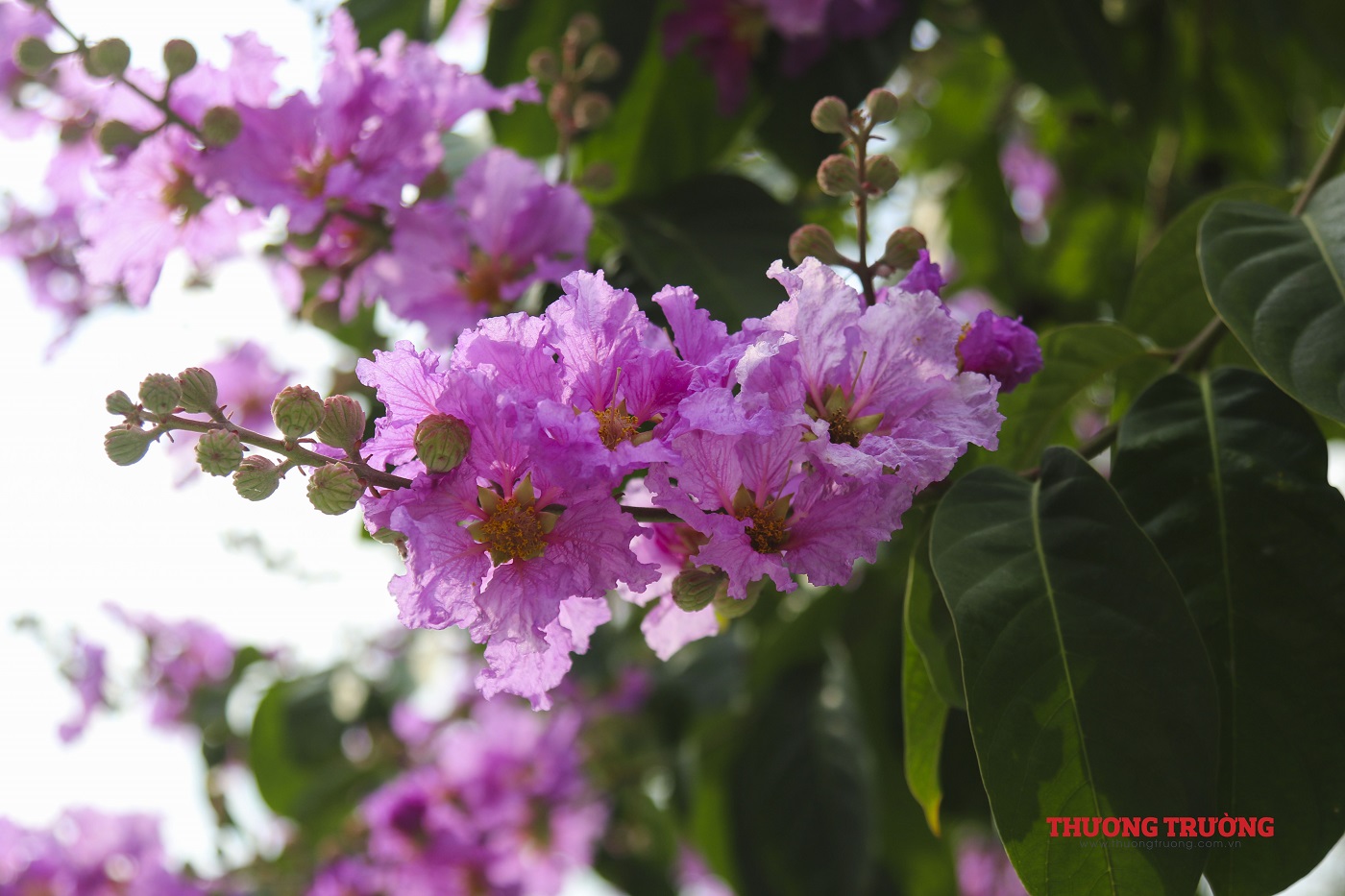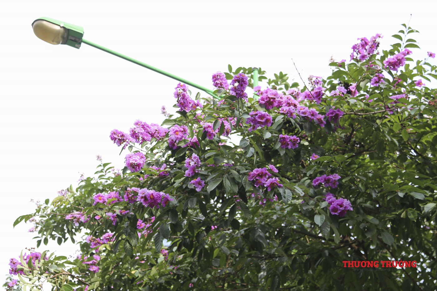 Vào hạ, trên nhiều con đường của Thủ đô hoa bằng lăng tím lại nở rộ. Sắc tím làm mê mẩn khiến bất cứ người nào đi qua cũng phải dừng chân ngắm nhìn. Đang mùa hoa nở, cả đoạn phố rực rỡ màu hoa tím ngắt.