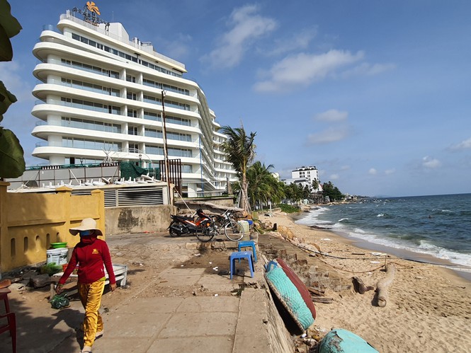 Bãi biển tại thị trấn Dương Đông bị bê tông hóa. Ảnh: Hồng Lĩnh