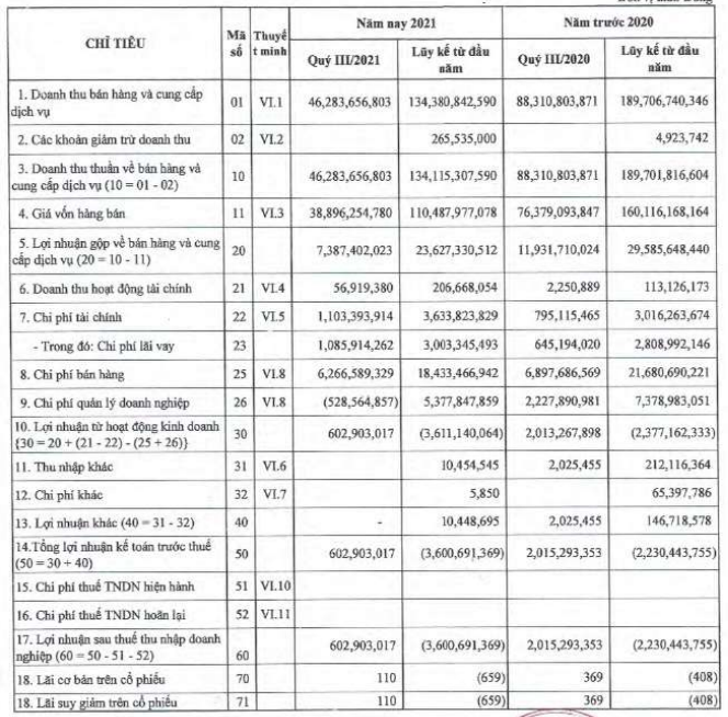 Quý 3/2021 Samatel ghi nhận lợi nhuận hơn 600 triệu đồng, không đủ bù đắp khoản lỗ nửa đầu năm. Lỗ lũy kế sau 9 tháng đã hơn 3,6 tỷ đồng.