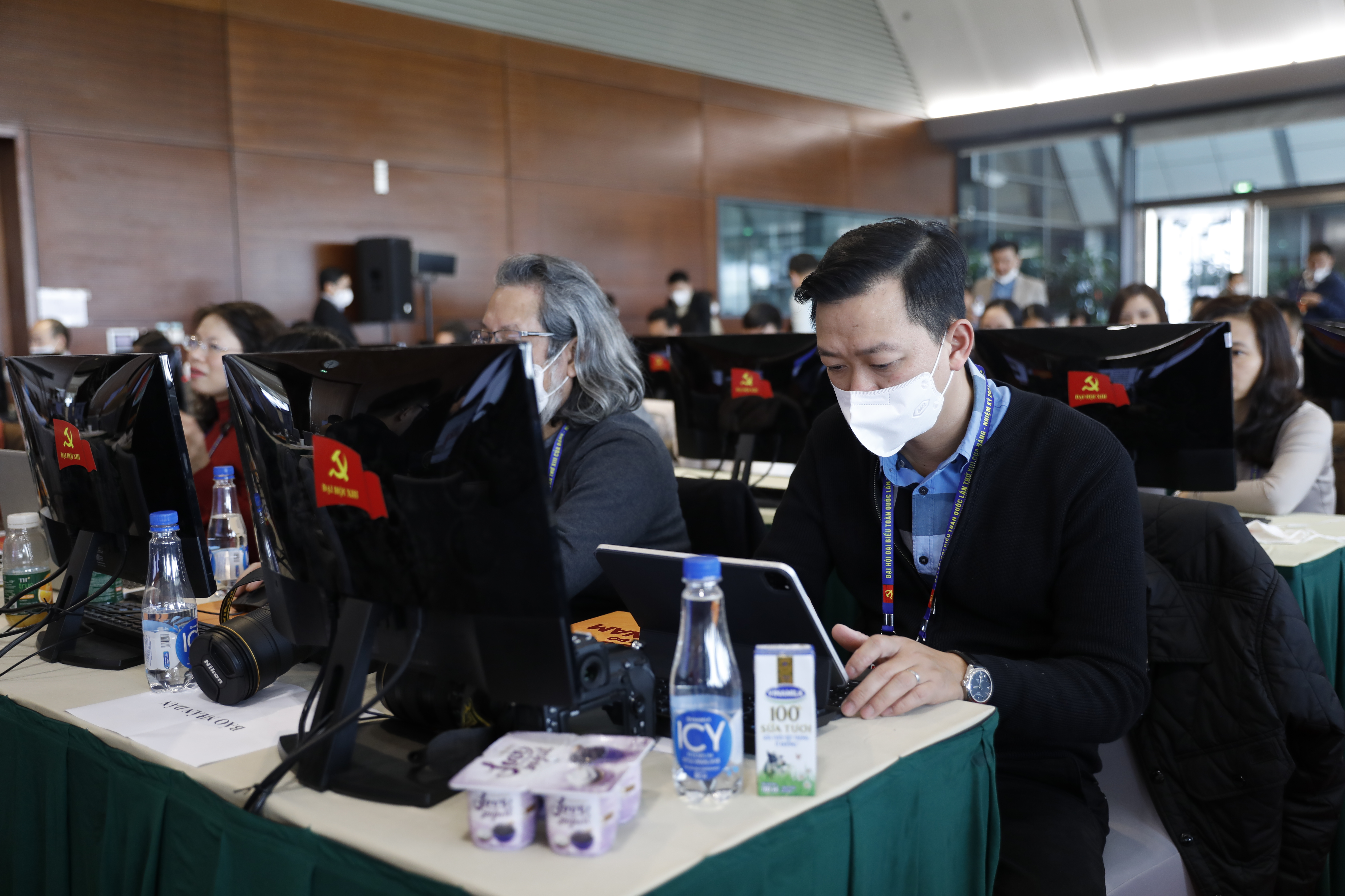 Các sản phẩm như nước, sữa, sữa chua Vinamilk phục vụ cho các phóng viên tác nghiệp 24/24 tại Trung tâm báo chí trong thời gian diễn ra Đại Hội Đảng