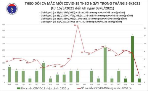 Đến 6h ngày 03/6: Việt Nam có tổng cộng 6.350 ca ghi nhận trong nước và 1.520 ca nhập cảnh.