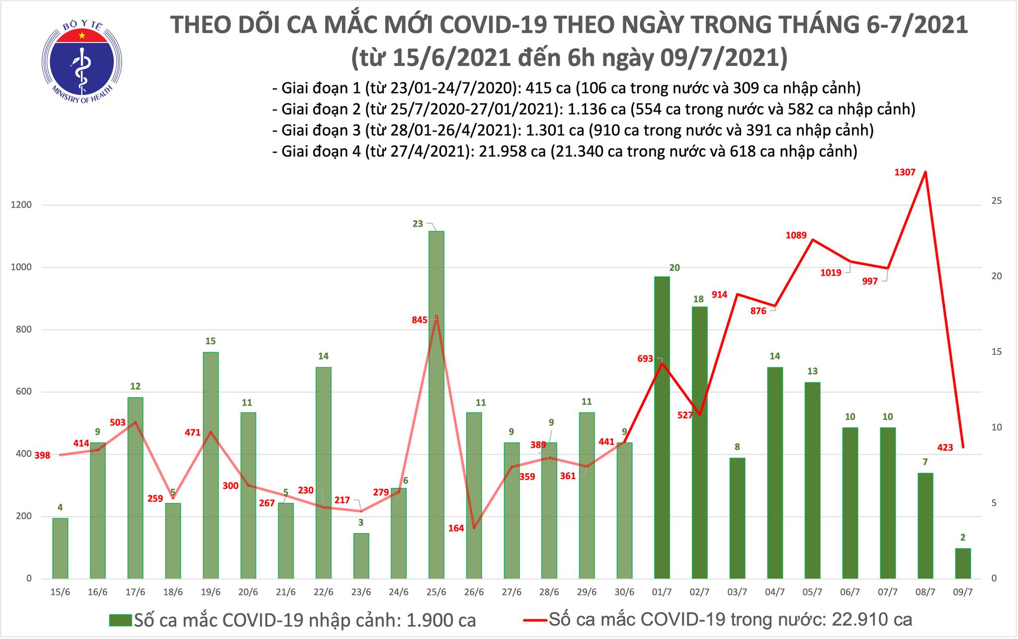 Tính từ 18h30 ngày 08/7 đến 6h ngày 09/7 có 425 ca mắc mới (BN24386-24810):