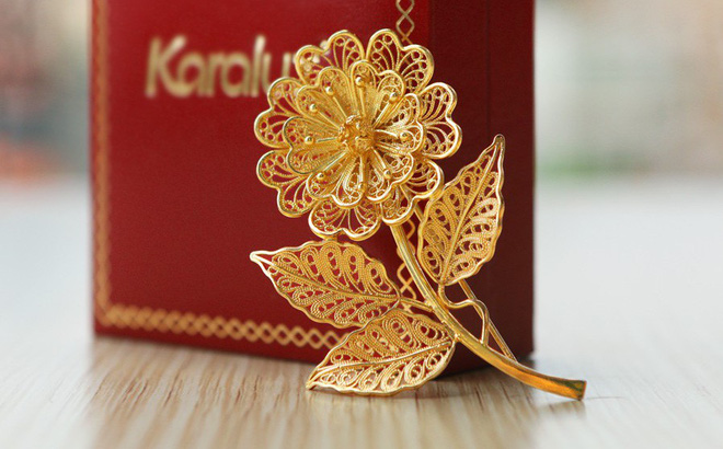 Sản phẩm hoa hồng mạ vàng cách điệu được nhiều người lựa chọn làm quà tặng 8/3