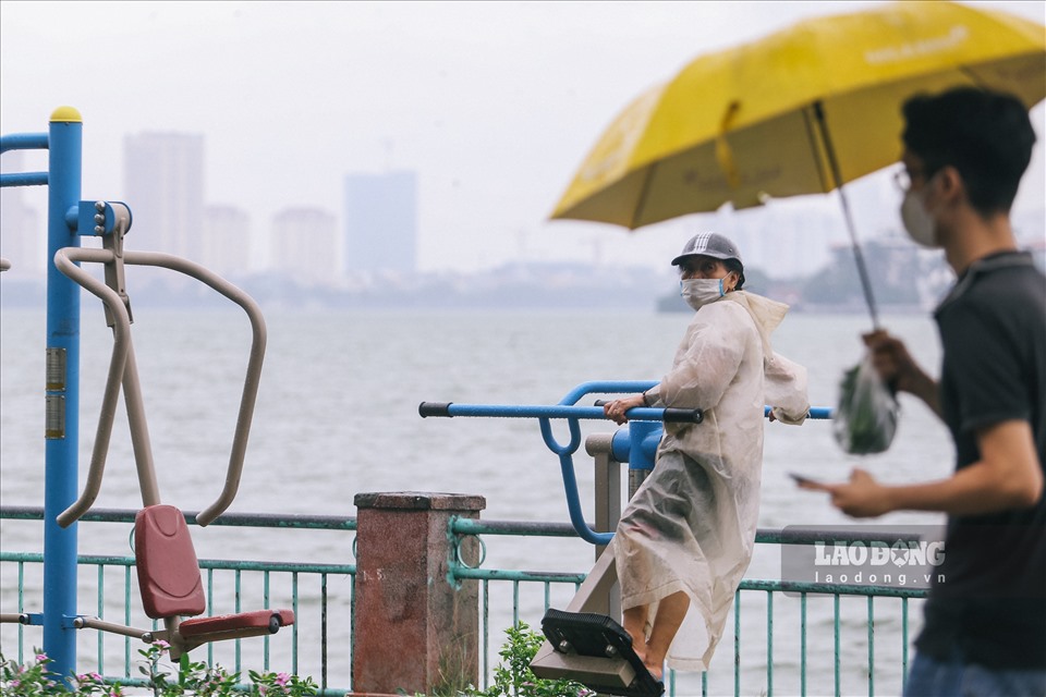 Nhiều người dân vẫn ra công viên tập thể dục bất chấp mưa lớn. Ảnh: Báo Lao động.