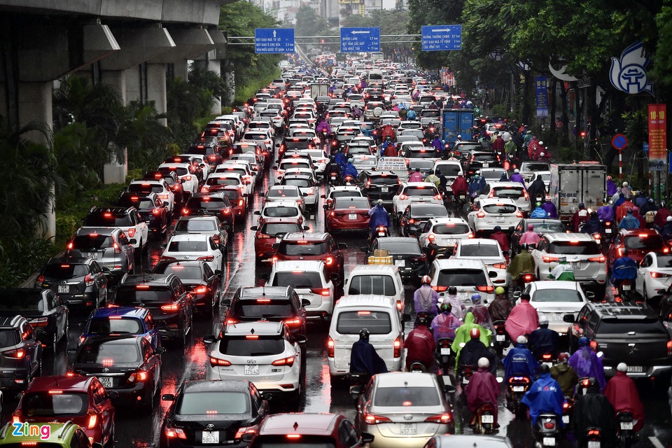 Nhiều tuyến phố Hà Nội kẹt cứng phương tiện đi lại.