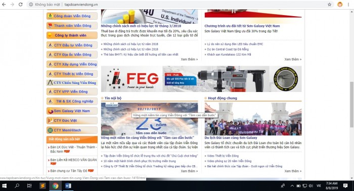 Website chính thức của Tập đoàn công nghiệp Viễn Đông hoàn toàn không thấy tên đơn vị thành viên là Công ty TNHH Thương mại và Đầu tư bất động sản Bình Minh |