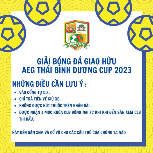Ngày 09/10 tới đây, trên sân vận động tỉnh Đồng Nai sẽ diễn ra giải Giải bóng đá AEG Thái Bình Dương CUP – 2023 với sự góp mặt của 4 đội dóng hàng đầu khu vực, hứa hẹn sẽ mang tới những trận đấu hấp dẫn cho người hâm mộ.