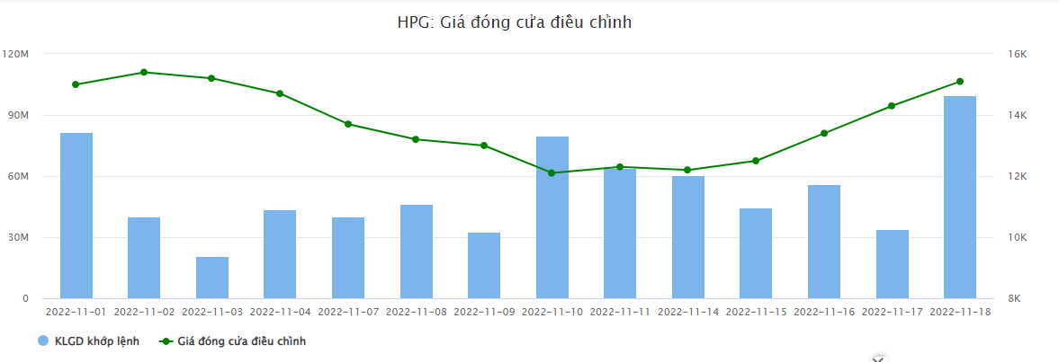 Tình hình giao dịch cổ phiếu HPG trong tháng 11/2022. Nguồn: Vietstock.