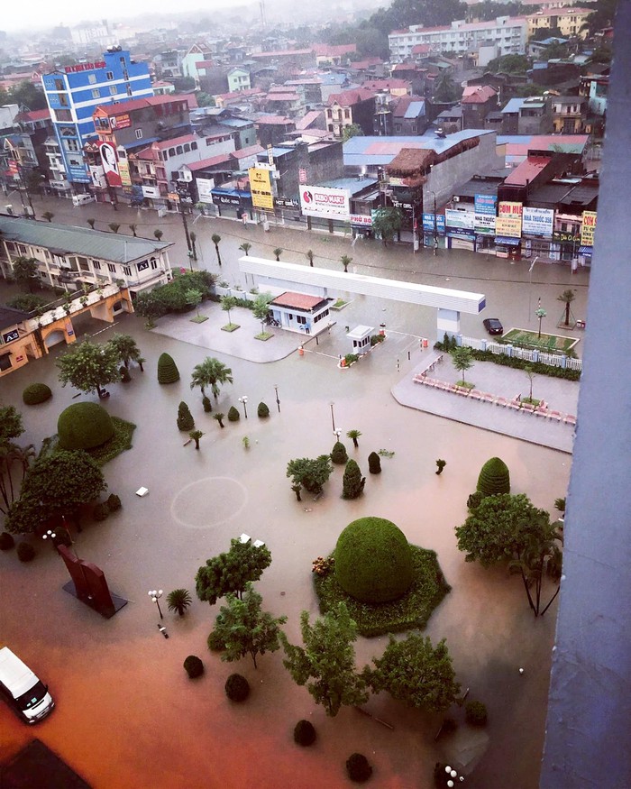 Thành phố Thái Nguyên chìm trong biển nước sau cơn mưa lớn kéo dài từ đêm qua