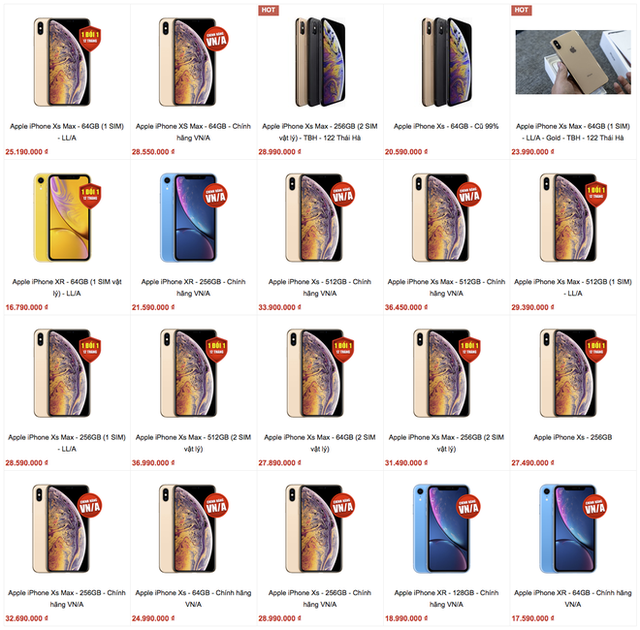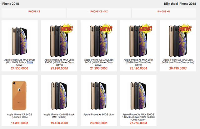 Danh mục iPhone XS/XR trên website của một hệ thống bán lẻ trước đây vẫn có sự xuất hiện của những model hàng xách tay (mã LL/A)