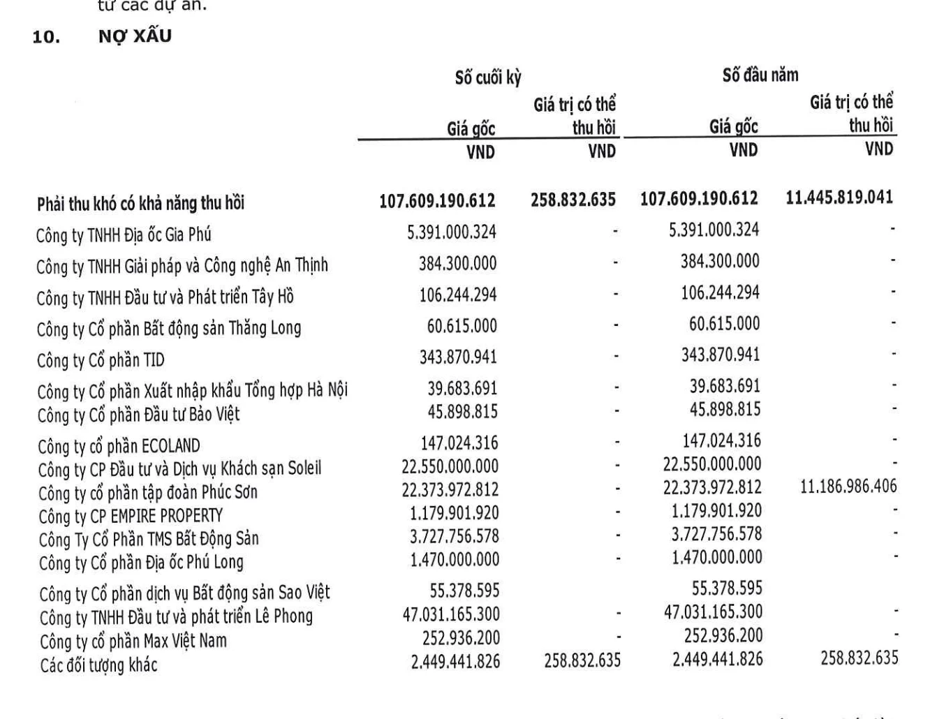 Trên tổng số nợ xấu, doanh nghiệp cho biết giá trị có thể thu hồi chỉ đạt chưa tới 259 triệu đồng.