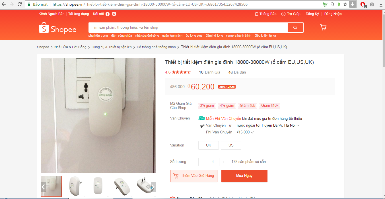 Ngoài các chiêu quảng cáo qua mạng xã hội, hay trang web, hiện nay một số các nhân cũng đang bán sản phẩm trên trang thương mại điện tử shopee. Rất ngạc nhiên, giá bán sản phẩm này tại đây lại thấp hơn rất nhiều so với các trang khác. Cụ thể, trên shopee hiện nay đang bán sản phẩm thiết bị tiết kiệm điện - Electricity Saving Box với giá 60.000 đồng, trong khi giá bán tại các trang khác đến cả triệu đồng. Về sản phẩm, quan sát có thể thấy chúng gần như không khác gì nhau. Điều đáng nói, với mức giá quá rẻ như vậy, lại quảng cáo với công dụng thần kỳ, bán trên trang thương mại điện với lượng tương tác vô cùng lớn chắc chắn không ít người tin và mua các sản phẩm này.