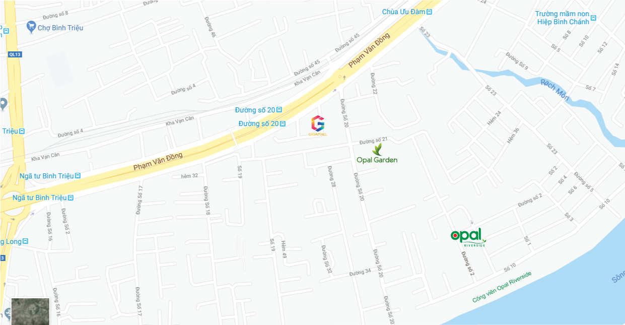Tuyến đường số 20 (P.Hiệp Bình Chánh, Q. Thủ Đức) – nơi tọa lạc khu căn hộ Opal Garden theo quy hoạch được mở rộng lên 20m; đường số 21 cũng mở rộng lên 12m. Đặc biệt Trung tâm thương mại Gigal Mall, ngay đường 20 và Phạm Văn Đồng có tổng diện tích lên đến 18.000m2, tập trung hơn 100 thương hiệu nổi tiếng trong nước và quốc tế sau khi hoàn thành sẽ phục vụ các dịch vụ ẩm thực, mua sắm, giải trí… Đây sẽ là trung tâm thương mại quy mô và hiện đại nhất trên trục đường Phạm Văn Đồng, là điểm sáng giúp gia tăng giá trị các sản phẩm bất động sản nơi đây.