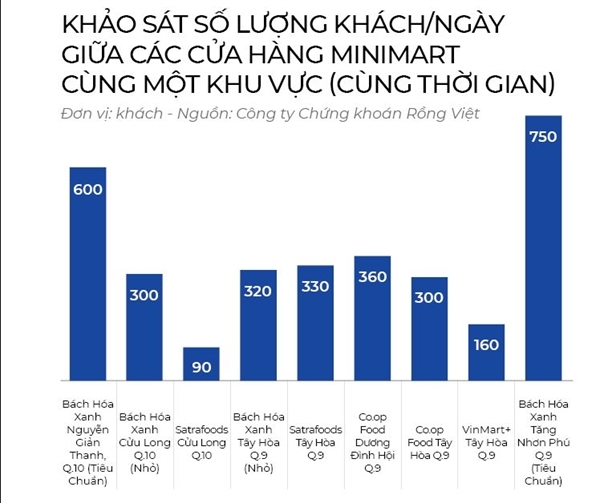 Về mặt chất lượng, thực phẩm ở các minimart đều có tiêu chuẩn VietGAP hoặc GlobalGAP, nhìn chung không có khác biệt đáng kể. Tuy nhiên, Bách Hóa Xanh hiện có lợi thế lớn về chủng loại hàng hóa, đặc biệt là các sản phẩm thịt/cá tươi (nhiều hơn 3-4 lần các chuỗi minimart khác). VDSC cho rằng sự đa dạng này là điểm mấu chốt đem lại lượng khách hàng và doanh thu cao hơn hẳn của các cửa hàng tiêu chuẩn so với các đối thủ cạnh tranh, trong khi các cửa hàng nhỏ không tạo được sự khác biệt này.