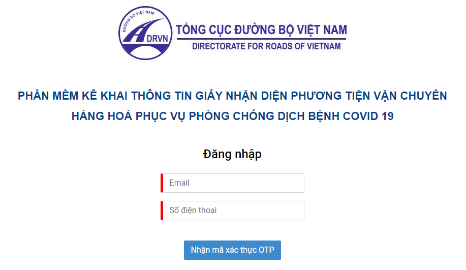 Để sử dụng phần mềm, doanh nghiệp truy cập vào đường link https://vantai.drvn.gov.vn/, nhập thông tin và chọn “Nhận mã xác thực” để nhận mã xác thực OTP về điện thoại của mình, sau đó đăng nhập để vào hệ thống và làm theo hướng dẫn để được cấp Giấy nhận diện xe có mã QR để lưu thông.