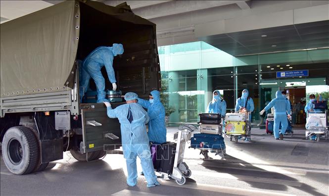 Công dân Việt Nam từ Đài Loan về nước được tiếp nhận, sắp xếp về khu cách ly y tế theo quy định. Ảnh: TTXVN.