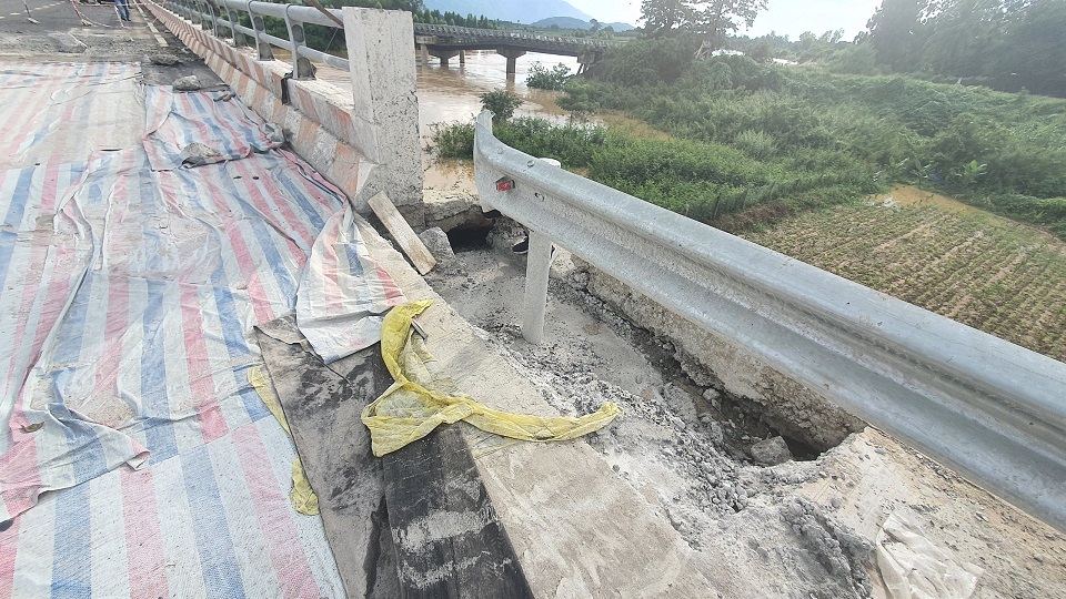 Theo ghi nhận, tại hiện trường nhiều khu vực mặt đường bị nứt toác. Khu vực tại cầu đang thi công xây dựng lại bị hư hỏng khoảng 20m. Đáng nói, nhiều khu vực gần cầu bị nứt, sụt lún sâu và có nhiều điểm chắp vá.
