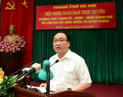 | Bí thư Thành ủy Hà Nội phát biểu tại buổi giao ban Thành ủy - HDND - UBND TP. Hà Nội quý III/2018 |