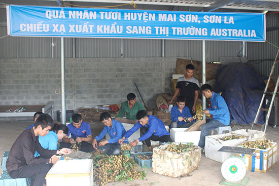 | Sơn La: Chuẩn bị xuất khẩu 1,2 tấn quả nhãn tươi sang Australia. Lực lượng đoàn viên thanh niên xã Chiềng Mung (Mai Sơn) đóng gói nhãn theo yêu cầu xuất khẩu. |