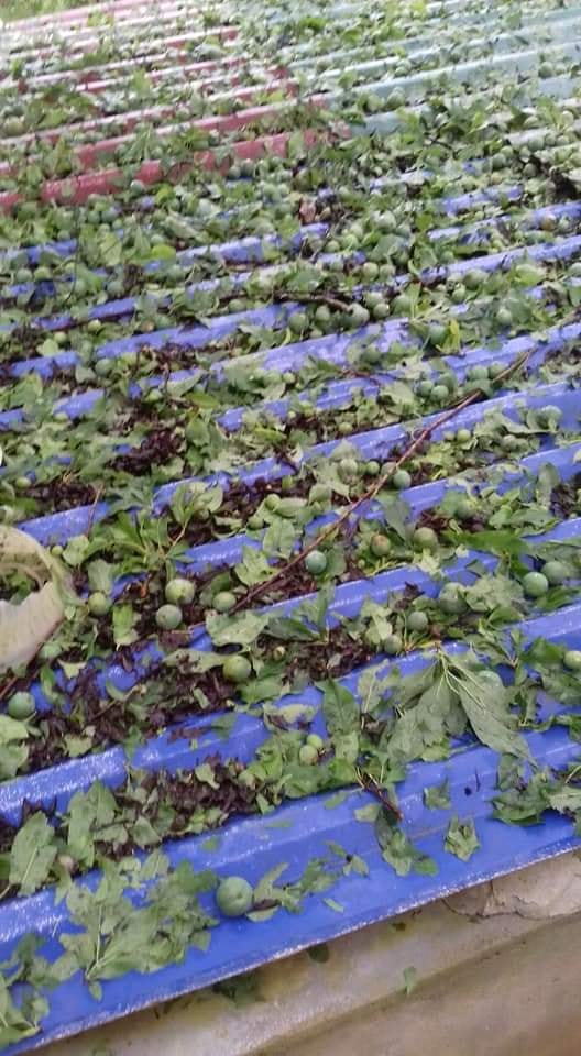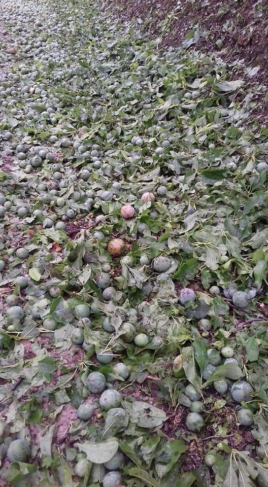 Mận rụng đầy đường sau trận mưa. Ảnh: FB