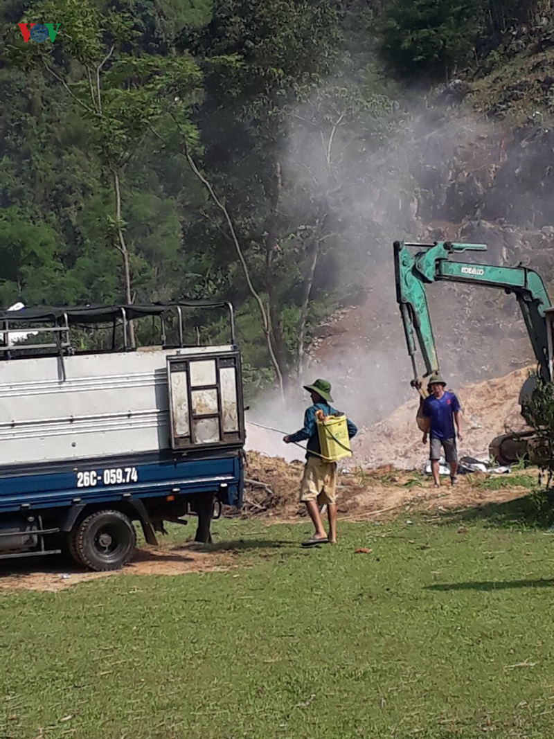 Phun khử trùng, tiêu độc quanh khu vực tiêu hủy. |