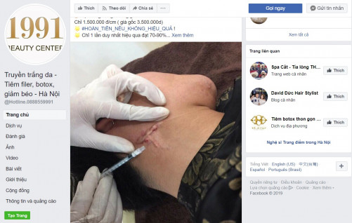 Spa 1991 Beauty Center của bà Nguyễn Thị Quỳnh Dương công khai quảng cáo các dịch vụ xâm lấn cơ thể bị "cấm" thực hiện ngoài bệnh viện và cơ sở khám chữa bệnh theo quy định. |
