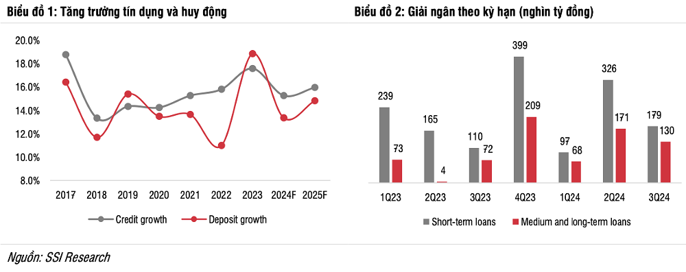 Trong bối cảnh kinh tế vĩ mô được kỳ vọng cải thiện vào năm 2025, SSI dự báo tăng trưởng tín dụng sẽ đạt 16% trong năm này. Tiềm năng tăng trưởng chủ yếu đến từ các ngành công nghệ thương mại, sản xuất và các doanh nghiệp FDI.