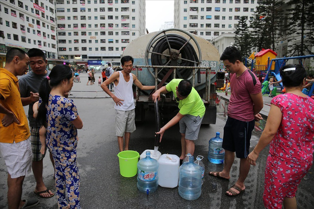 Nhiều khu chung cư khốn đốn sau sự cố nước sông Đà.