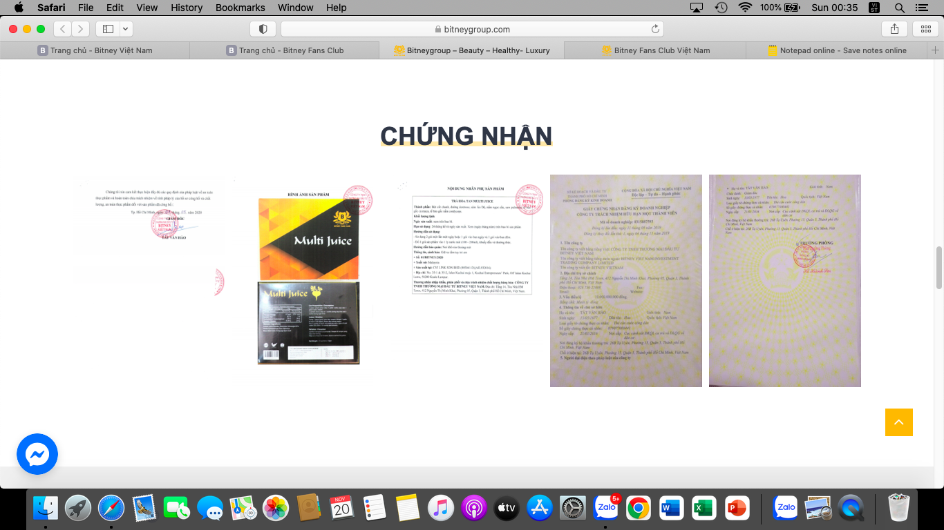 Kèm theo thông tin quảng cáo về sản phẩm, một số website kể trên còn đăng kèm các tài liệu liên quan tới sản phẩm như giấy chứng nhận đăng ký doanh nghiệp, bản tự công bố sản phẩm, kết quả thử nghiệm sản phẩm... trong đó có những nội dung thể hiện: Thương nhân nhập khẩu, phân phối và chịu trách nhiệm về chất lượng hàng hoá là Công ty TNHH Thương mại Đầu tư Bitney Việt Nam.