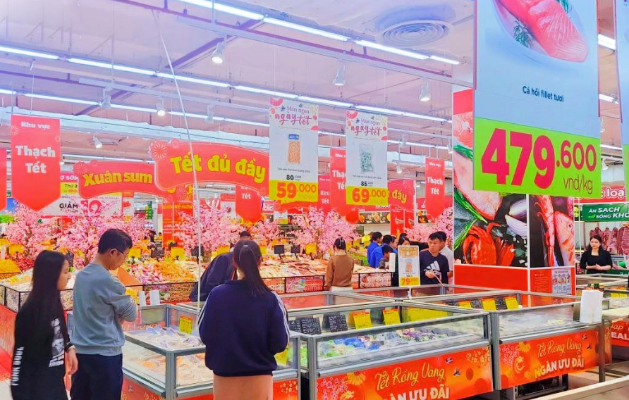 Trong khi tại tại siêu thị, trung tâm thương mại, hàng hóa được bày bán rất phong phú, đa dạng về chủng loại, mẫu mã, đáp ứng nhu cầu tiêu dùng của người dân. Thực tế, ngay trong sáng 01/2, người dân cũng đã đổ về rất đông tại các cơ sở bán lẻ hiện đại như MM Mega Market, Lotte, Go! Vinh. Đại diện các siêu thị, cho biết sức mua đã bắt đầu tăng lên trong mấy ngày qua. Dù còn hơn 1 tuần nữa là chúng ta chuẩn bị đón Tết cổ truyền, cán bộ, công nhân viên chức chưa được nghỉ tết theo quy định, song sức mua đã rục rịch tăng. Bình quân lượng hàng hoá bán ra trung bình tăng khoảng 20% - 35% so với vài tuần trước.