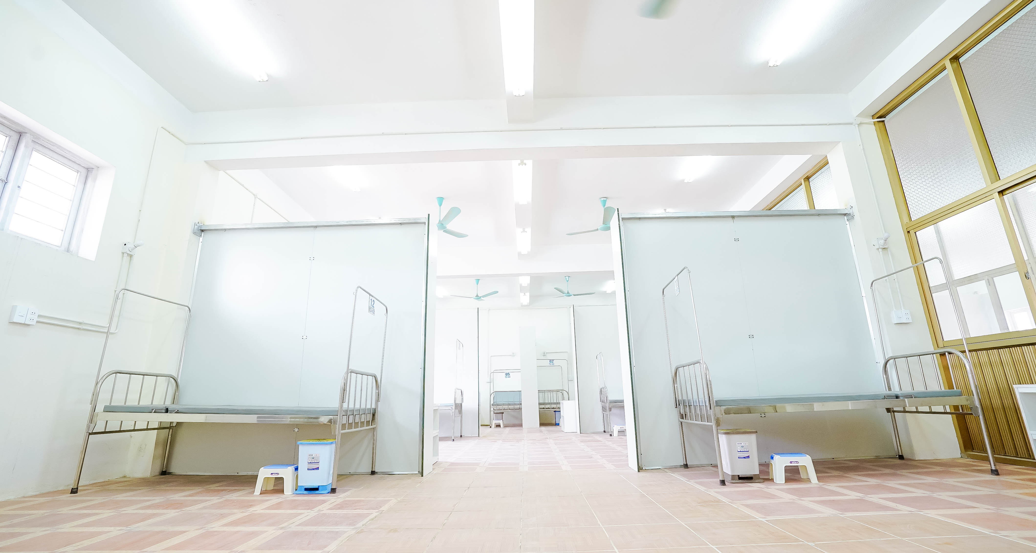 Đặc biệt, ngoài cải tạo, mở rộng hai phòng vệ sinh cũ của Trung tâm Thực hành Thực nghiệm, Sun Group cũng đã thi công, lắp đặp thêm 8 nhà vệ sinh mới, rộng rãi để phục vụ nhu cầu sinh hoạt cho các bệnh nhân. Khu vực phòng tắm và vệ sinh của y bác sỹ cũng được xây độc lập với khu vực của các bệnh nhân để đảm bảo an toàn cho đội ngũ y bác sỹ.