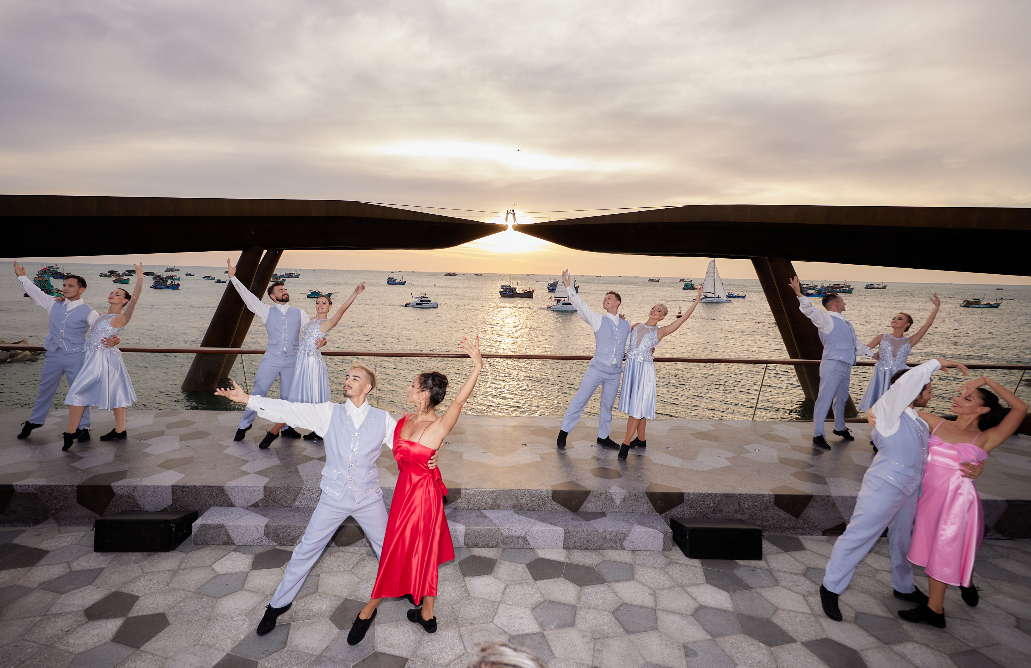 Được thiết kế như một tác phẩm điêu khắc trên mặt nước biển, Cầu Hôn khiến giới kiến trúc kinh ngạc bởi độ khó, khi các đường nét mềm mại như một dải lụa vươn ra giữa biển cũng chính là kết cấu tạo nên sự vững chắc của cây cầu.