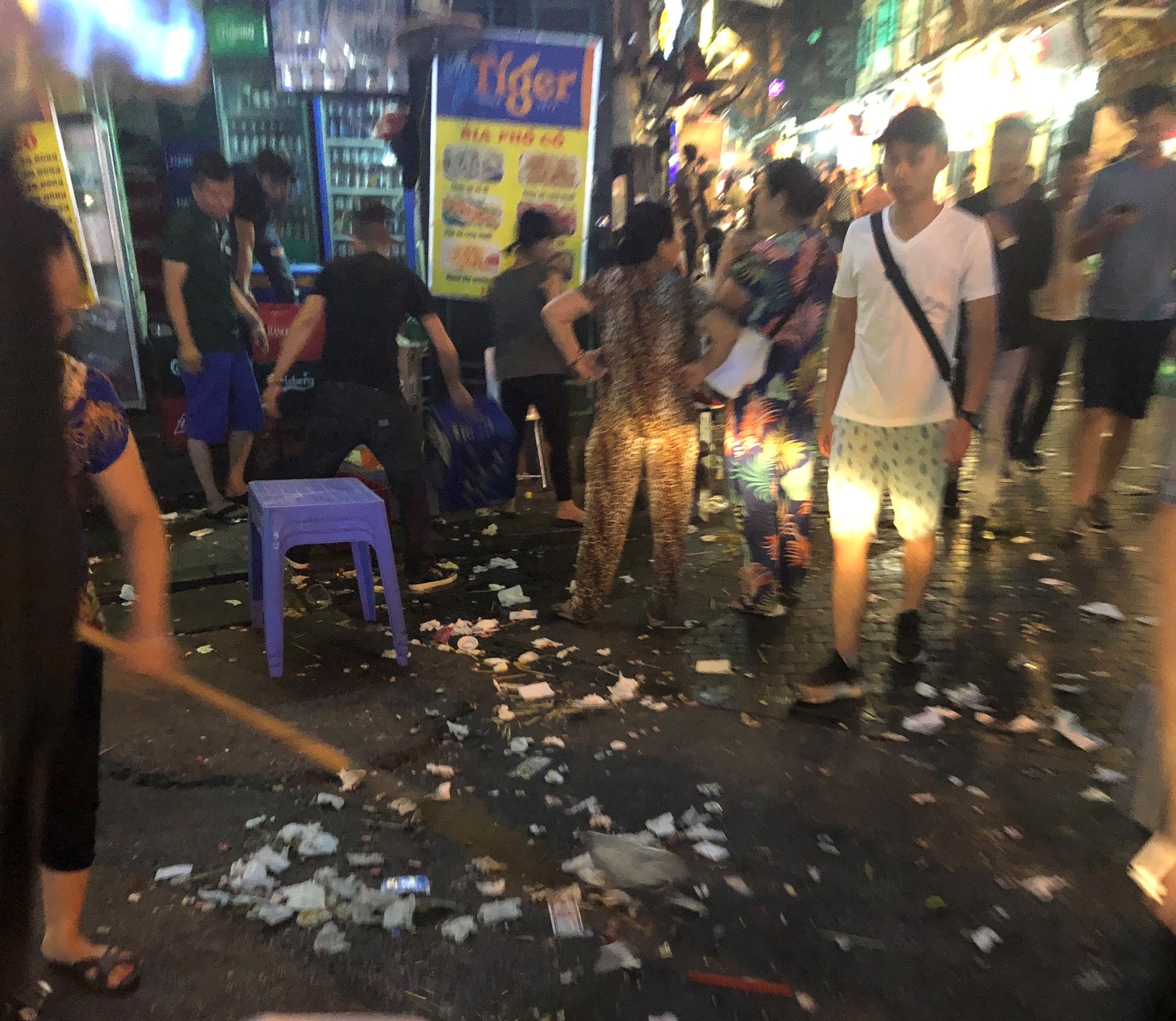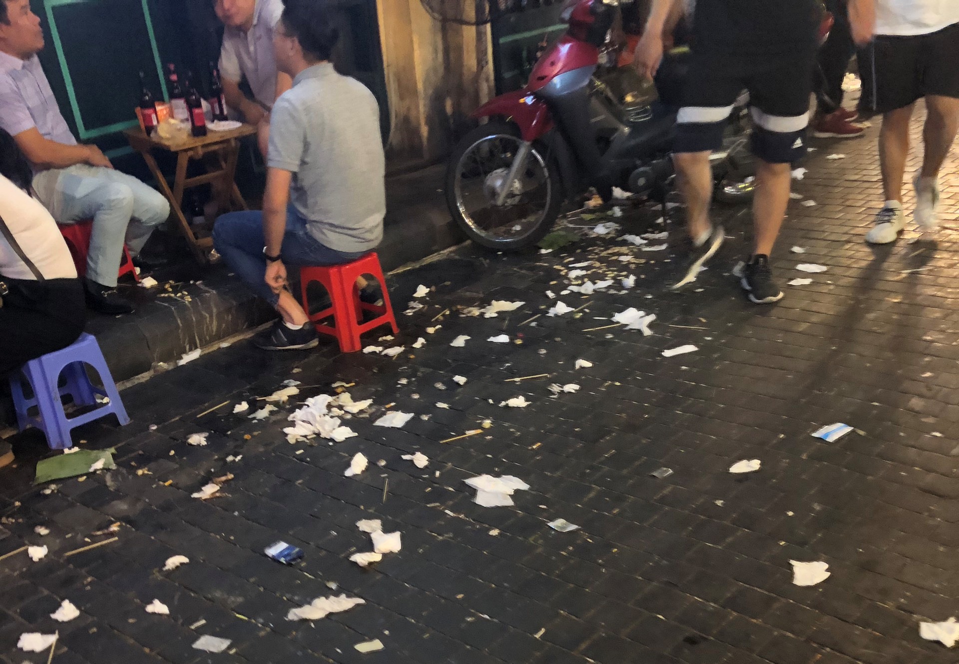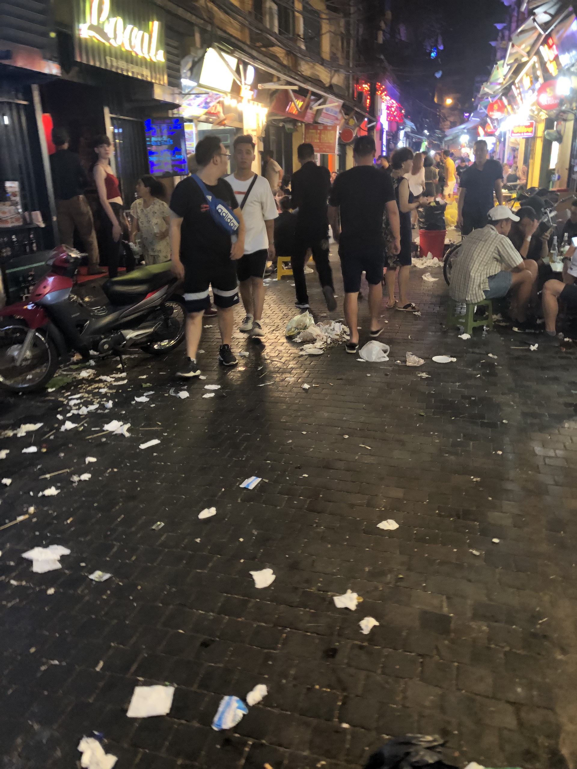 Được xem là khu phố Tây duy nhất ở Thủ đô, Tạ Hiện nổi tiếng với những quán bia mọc san sát luôn nằm trong danh sách những địa điểm phải đến ở Hà Nội. Bên cạnh không khí "kinh tế đêm" náo nhiệt, nhiều du khách không khỏi ái ngái trước cảnh vứt rác thải bừa bãi gây mất mỹ quan của con phố này.