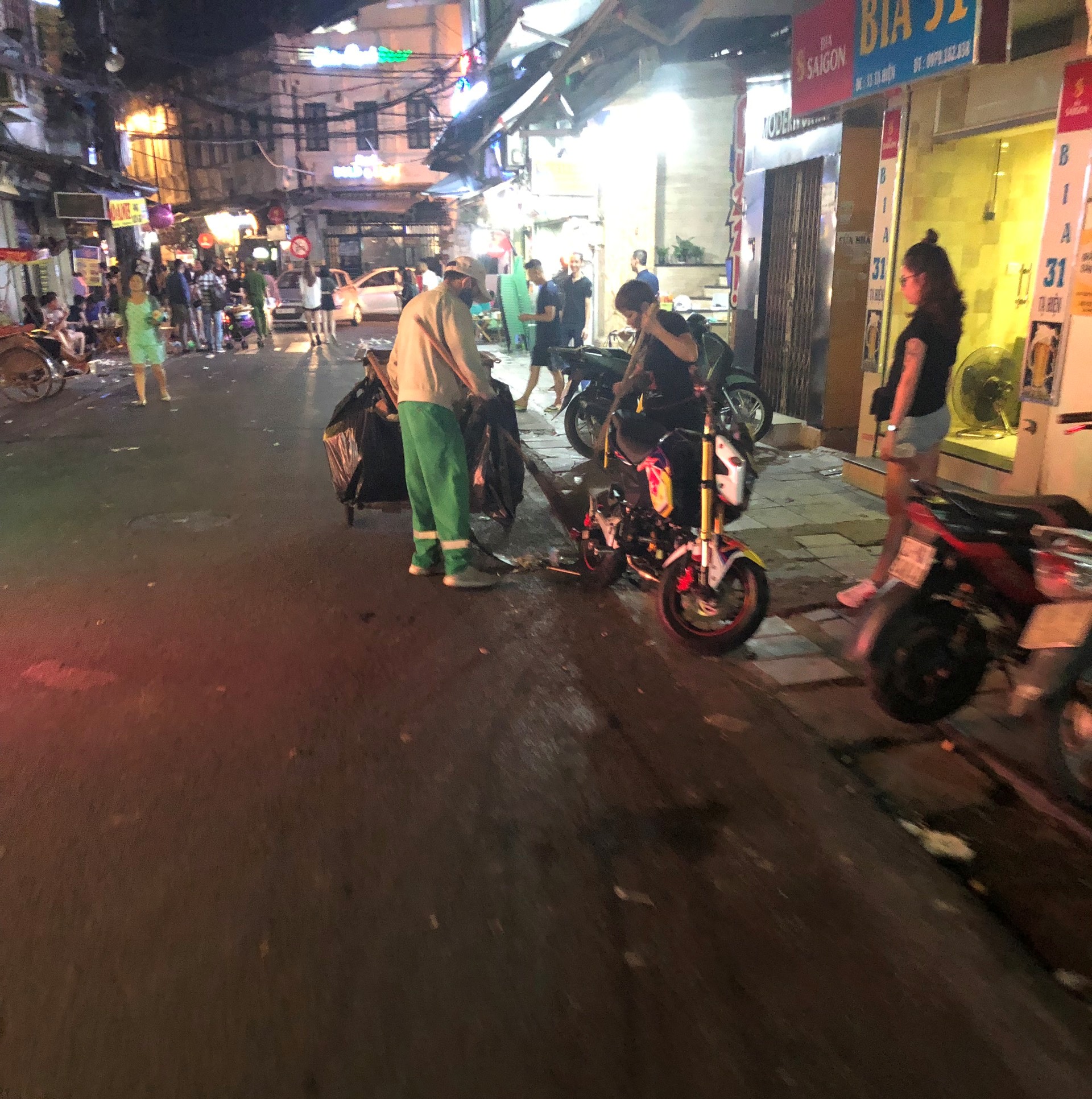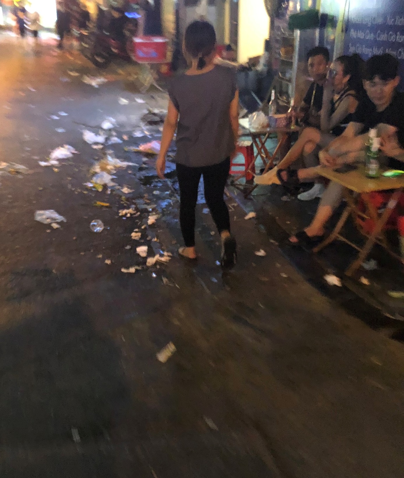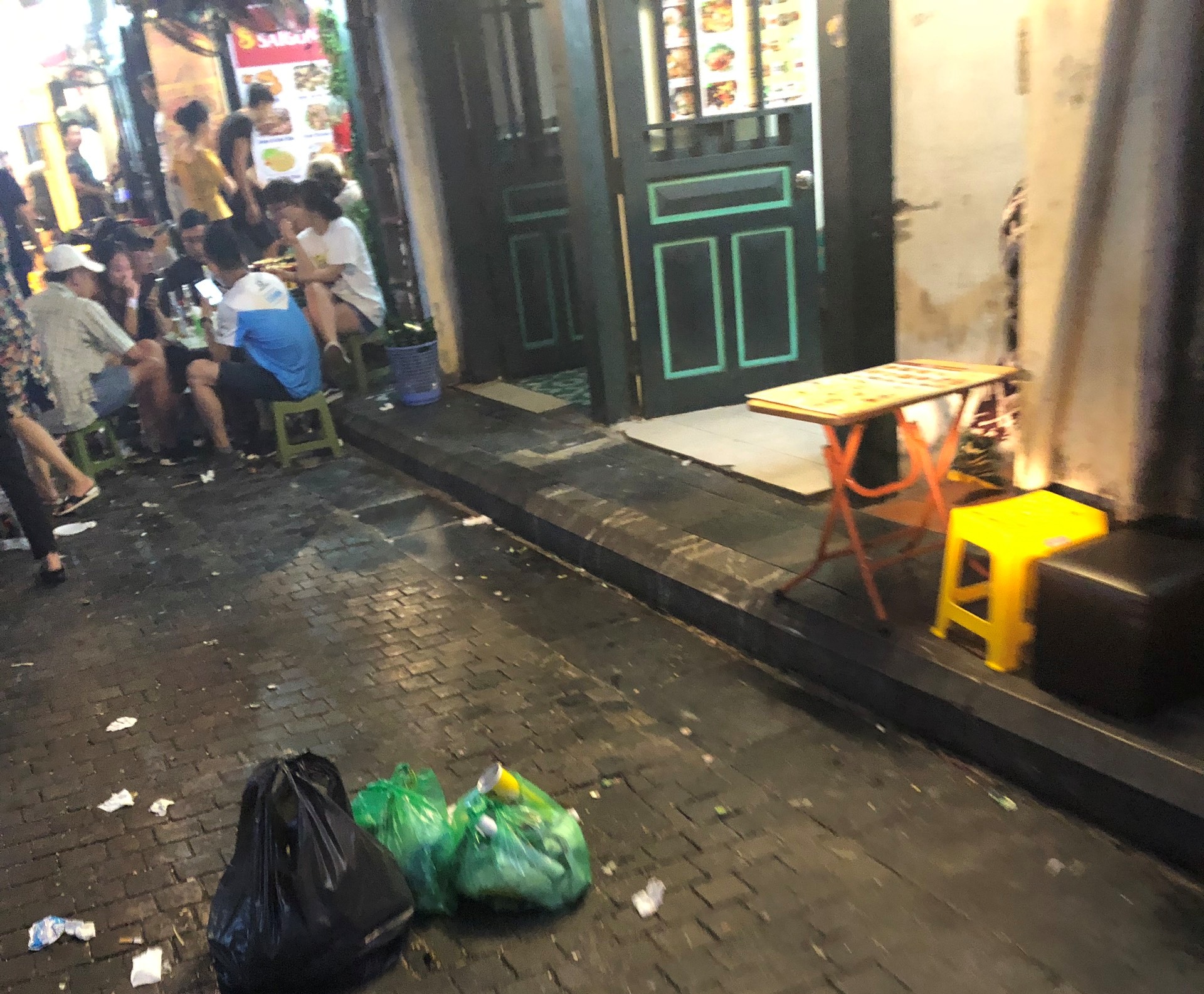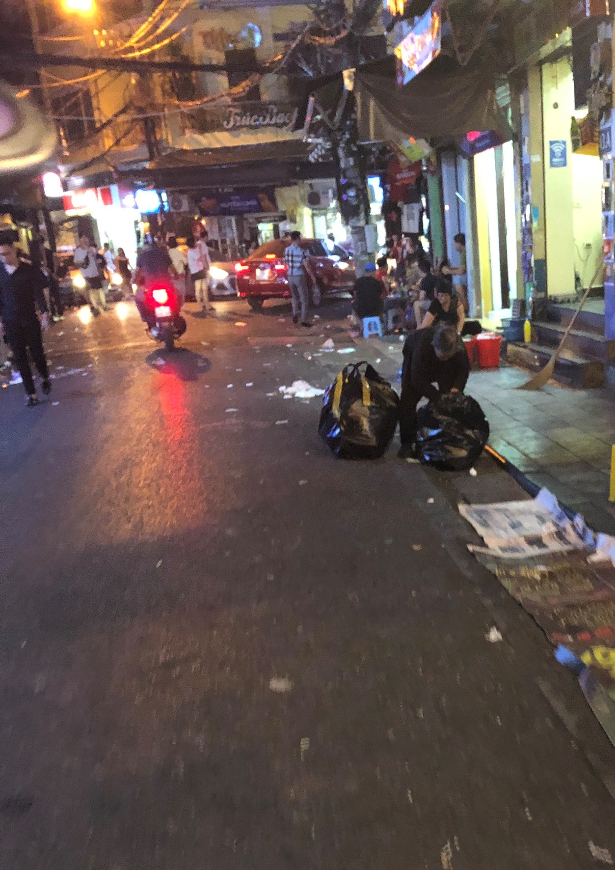 Được xem là khu phố Tây duy nhất ở Thủ đô, Tạ Hiện nổi tiếng với những quán bia mọc san sát luôn nằm trong danh sách những địa điểm phải đến ở Hà Nội. Bên cạnh không khí "kinh tế đêm" náo nhiệt, nhiều du khách không khỏi ái ngái trước cảnh vứt rác thải bừa bãi gây mất mỹ quan của con phố này.