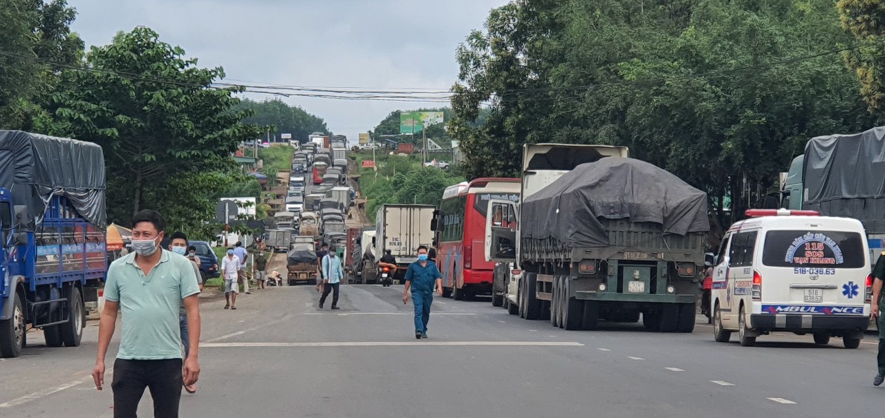Hàng trăm phương tiện, người dân ở các tỉnh Đắk Lắk, Gia Lai, Kon Tum… bị “tắc” ở tỉnh Đắk Nông do chưa có giấy xét nghiệm âm tính để đi qua tỉnh Bình Phước dù không dừng, đỗ tại tỉnh này.