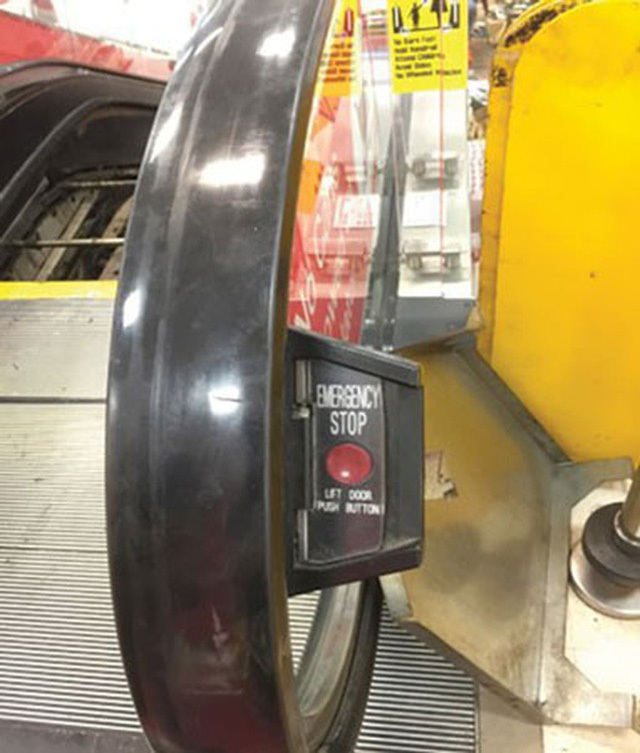 Nút "dừng khẩn cấp" của thang cuốn. |