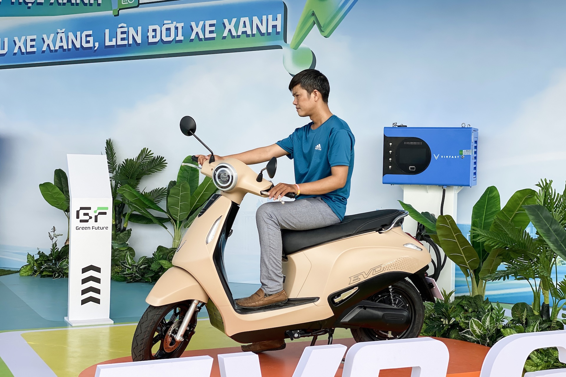 Không chỉ ô tô, khu vực xe máy điện tại sự kiện cũng thu hút đông đảo sự quan tâm, đặc biệt là mẫu VinFast Evo Grand vừa ra mắt. Nhiều tài xế công nghệ chia sẻ muốn sở hữu xe riêng để chủ động chạy Xanh Platform, và Evo Grand trở thành lựa chọn khó chối từ.