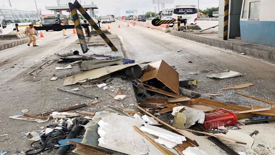 Tại hiện trường, buồng thu phí vỡ nát, cabin xe đầu kéo hư hỏng nặng. May mắn, vào thời điểm xảy ra tai nạn, buồng thu phí không có nhân viên nên không xảy ra thương vong.