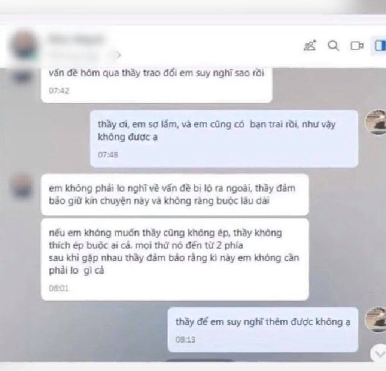 Đoạn tin nhắn xuất hiện trên mạng xã hội giữa nam giảng viên và nữ sinh.