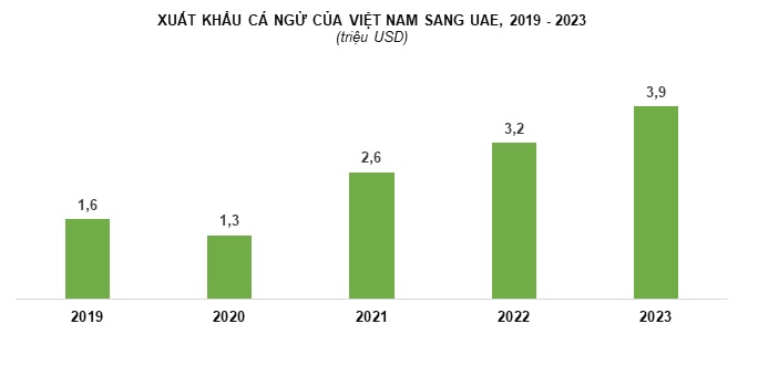 Theo số liệu thống kê của Hải quan Việt Nam, giá trị XK cá ngừ của của Việt Nam sang UAE sau khi bị sụt giảm vào năm 2020 do ảnh hưởng của đại dịch Covid-19 đã tăng trưởng liên tục trong những năm sau đó. Giá trị XK cá ngừ sang thị trường này đã tăng từ mức 1,6 triệu USD năm 2019 lên gần 4 triệu USD năm 2023, tăng 139% trong 5 năm. Việt Nam hiện đang là 1 trong 3 nguồn cung cá ngừ lớn nhất cho thị trường này.