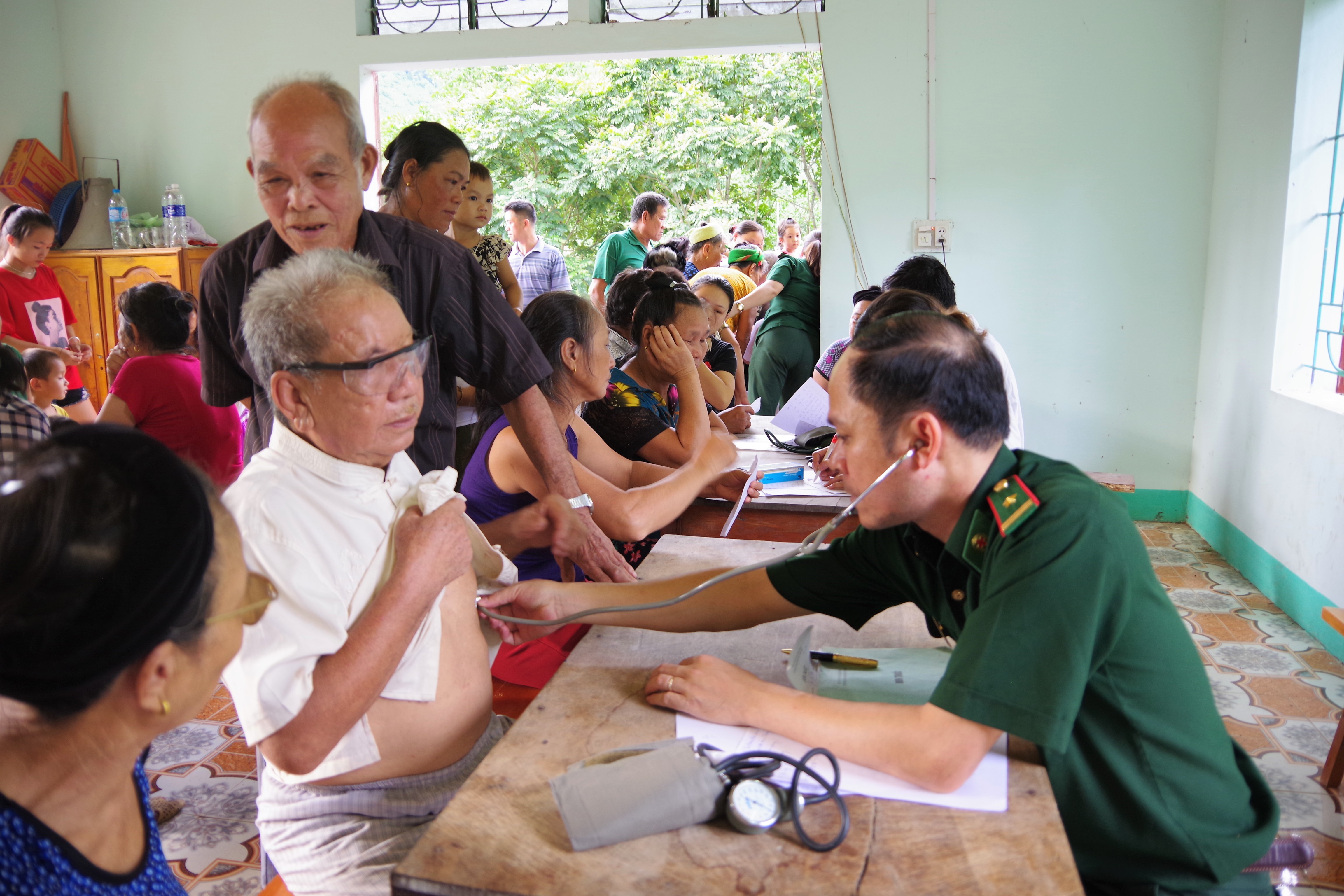 | Quân y khám chữa bệnh cho người già tại bản Bà, xã Hữu Kiệm, huyện Kỳ Sơn |