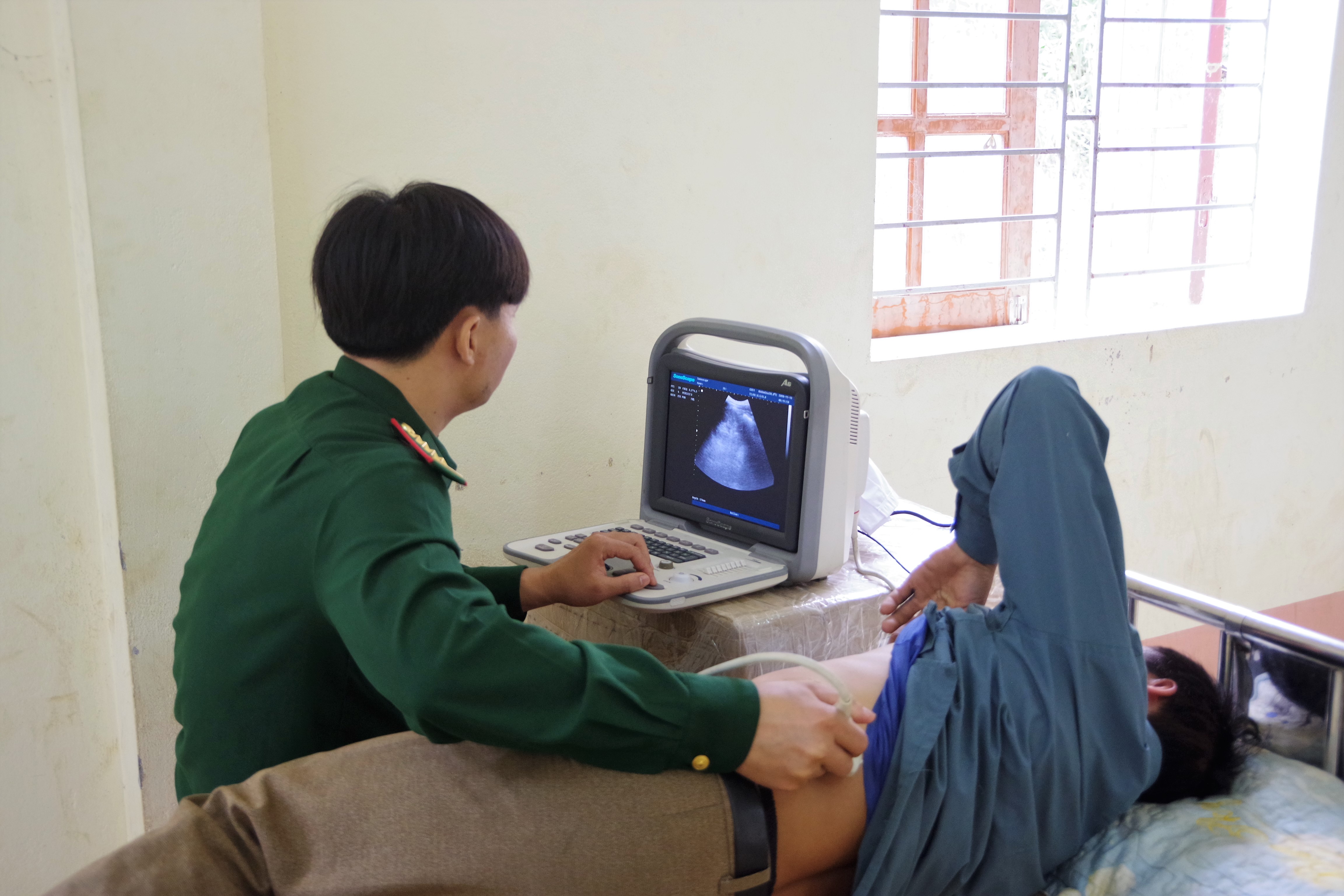 | Sử dụng máy siêu âm trong khám bệnh cho đồng bào tại địa bàn xã biên giới Tam Hợp, huyện Tương Dương |