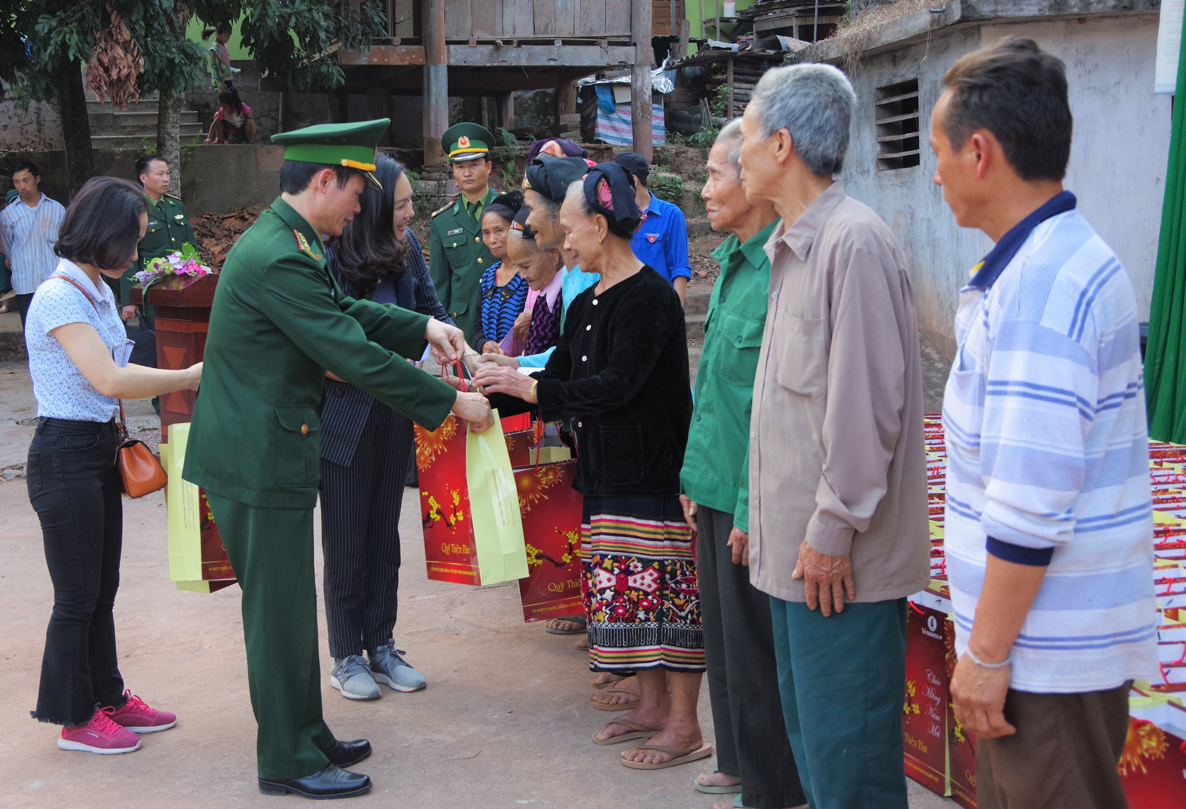 Đại diện Bộ chỉ huy BĐBP Nghệ An, Báo Đầu tư và Ngân hàng Đầu tư và phát triển Việt Nam (BIDV) chi nhánh Nghệ An trao quà Tết cho đồng bào 2 xã biên giới Mỹ Lý và Bắc Lý, huyện Kỳ Sơn.