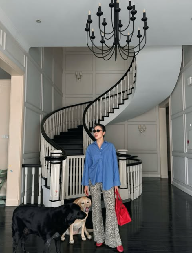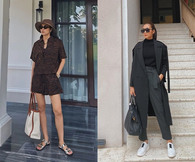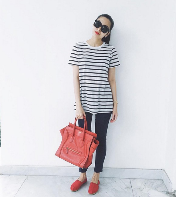 Hà Tăng có niềm đam mê với túi xách big size. Vừa thời trang lại đặc biệt tiện dụng, đây dường như là thiết kế xuất hiện nhiều nhất trong tủ đồ của mẹ 3 con.