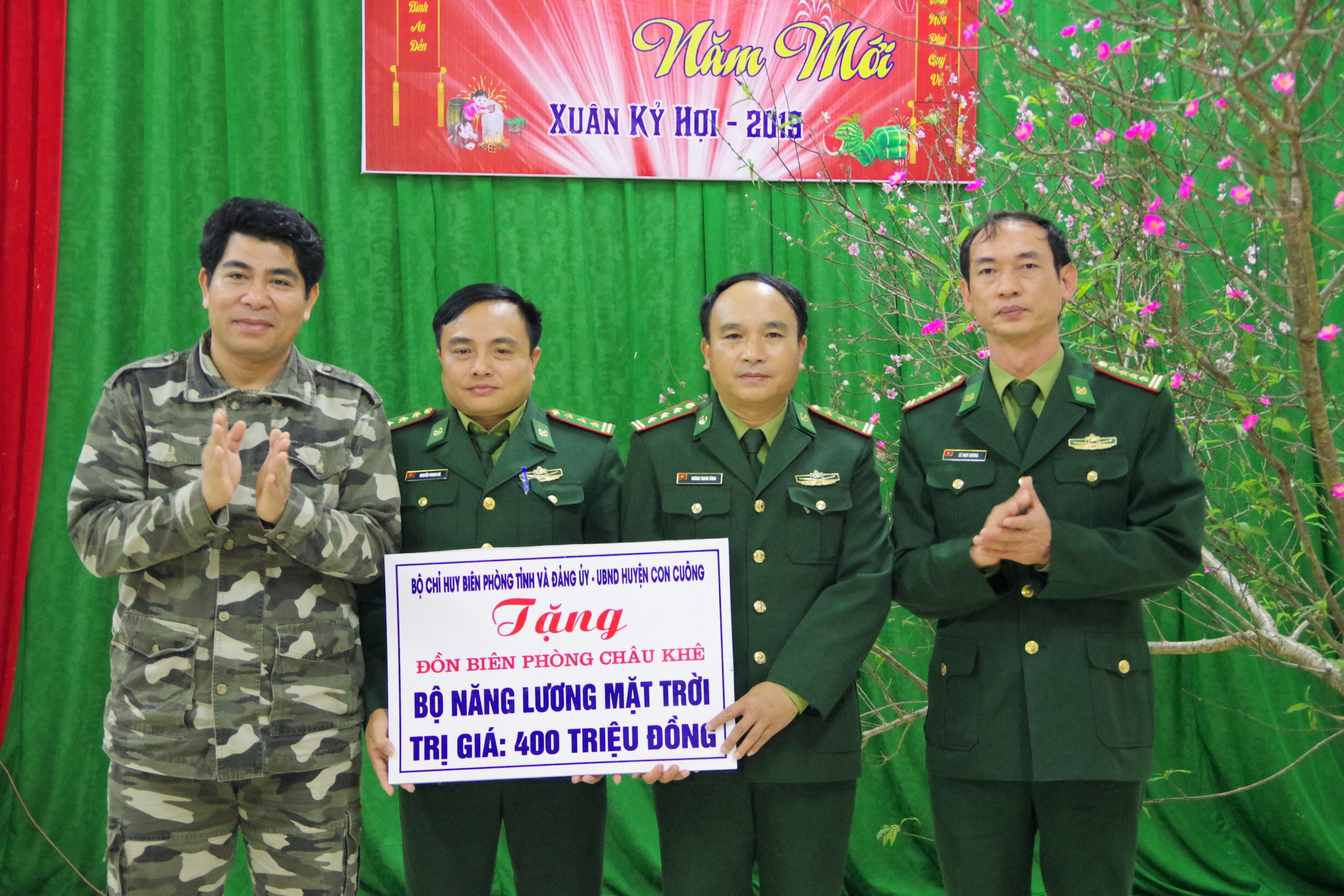 | Bộ chỉ huy BĐBP Nghệ An và huyện uỷ, UBND huyện Con Cuông tặng bộ năng lượng mặt trời trị giá 400 triệu đồng cho Đồn BP Châu Khê. |
