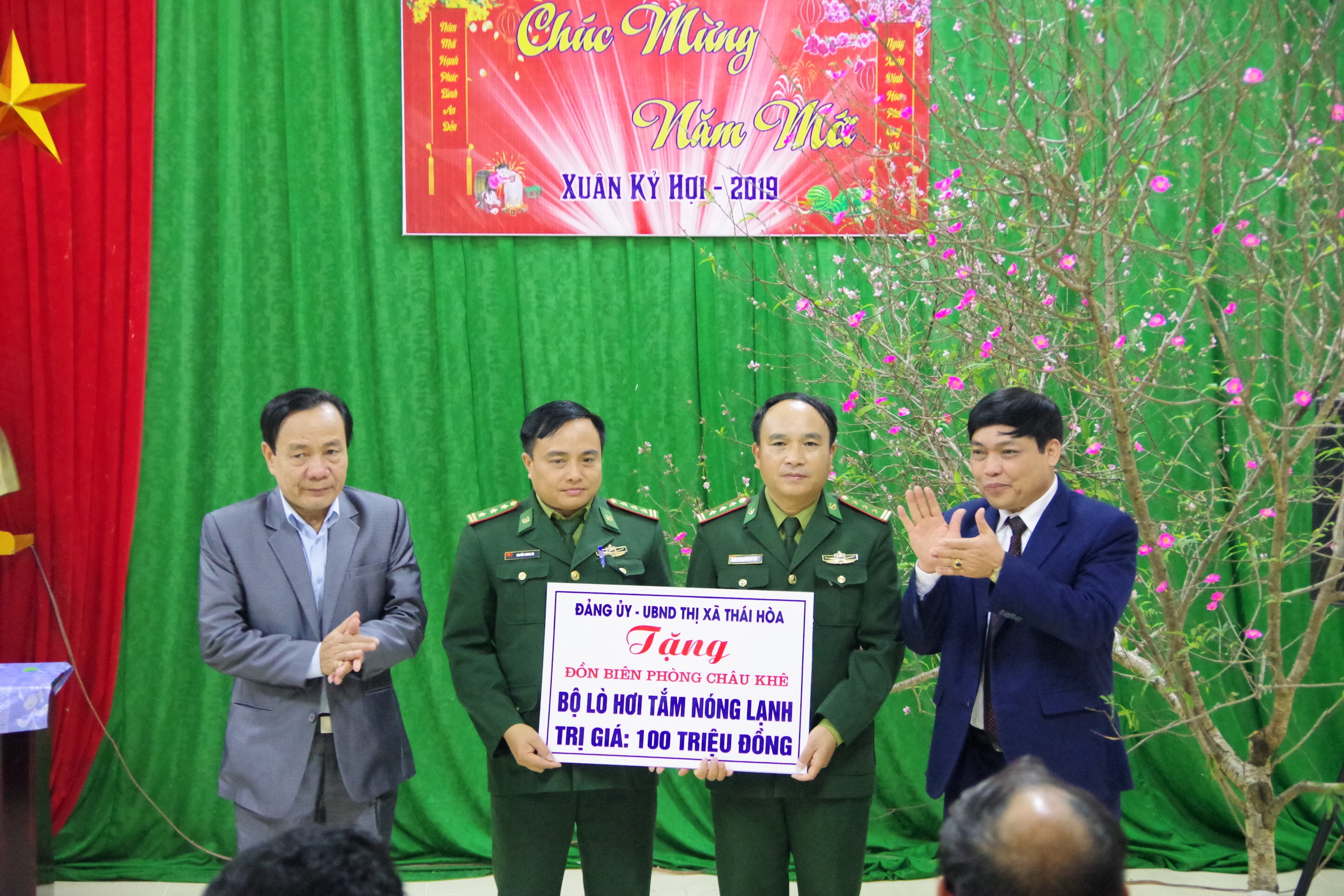 | Thị ủy – UBND thị xã Thái Hòa tặng Đồn BP Châu Khê 1 bộ lò hơi tắm nước nóng trị giá 100 triệu đồng |