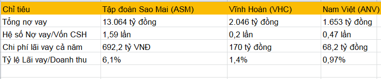 Dữ liệu cho thấy tổng nợ vay của ASM lên tới hơn 13.000 tỉ đồng, cao gấp nhiều lần so với các doanh nghiệp cùng ngành, trong khi hệ số nợ vay trên vốn chủ sở hữu đạt 1,59 lần - gần gấp 8 lần mức của Vĩnh Hoàn. Mức đòn bẩy này phản ánh tình trạng thâm dụng vốn vay lớn, làm suy giảm đáng kể khả năng chống chịu tài chính trong bối cảnh thị trường còn nhiều biến động và chi phí vốn duy trì ở mức cao.