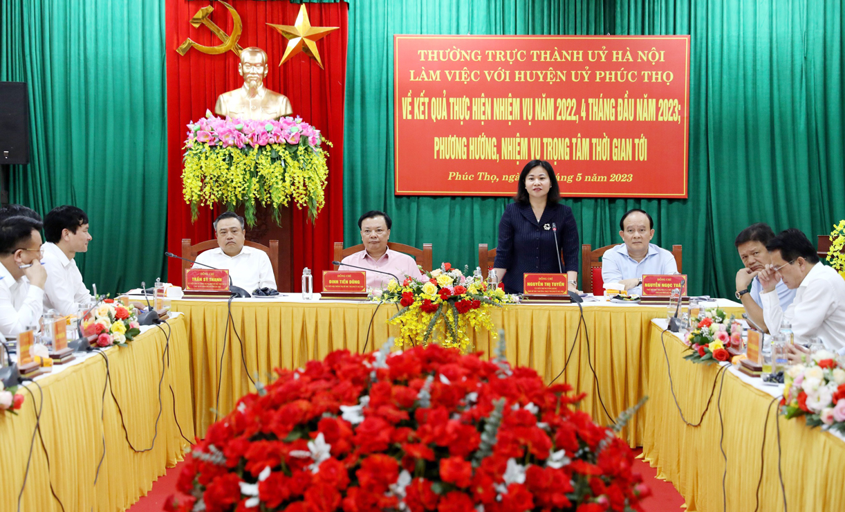 Ngày 10/5, Thường trực Thành uỷ Hà Nội làm việc với Huyện ủy Phúc Thọ về kết quả thực hiện nhiệm vụ năm 2022, quý I/2023 và nhiệm vụ trọng tâm thời gian tới.