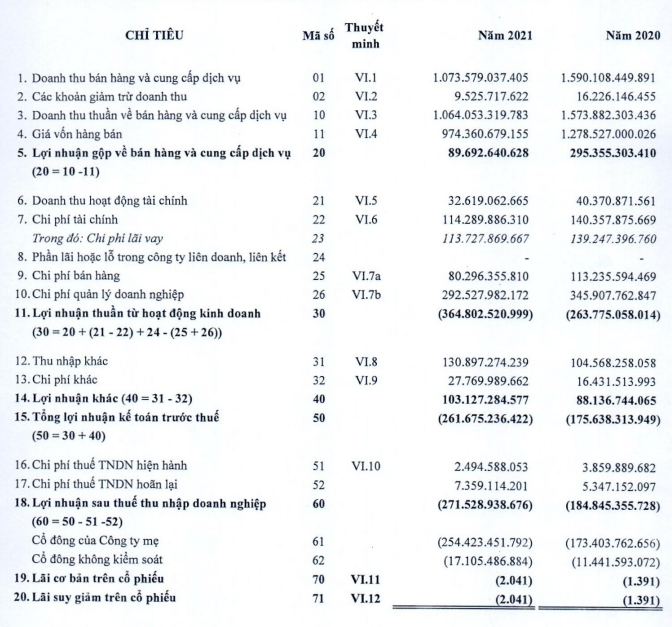 Giá vốn ghi nhận hơn 974 tỷ đồng đã kéo biên lãi gộp xuống còn gần 89,7 tỷ đồng, giảm 70% so với cùng kỳ. Trong kỳ, công ty có nỗ lực tiết giảm các chi phí như chi phí quản lý doanh nghiệp giảm 15%, chi phí bán hàng giảm 29%,